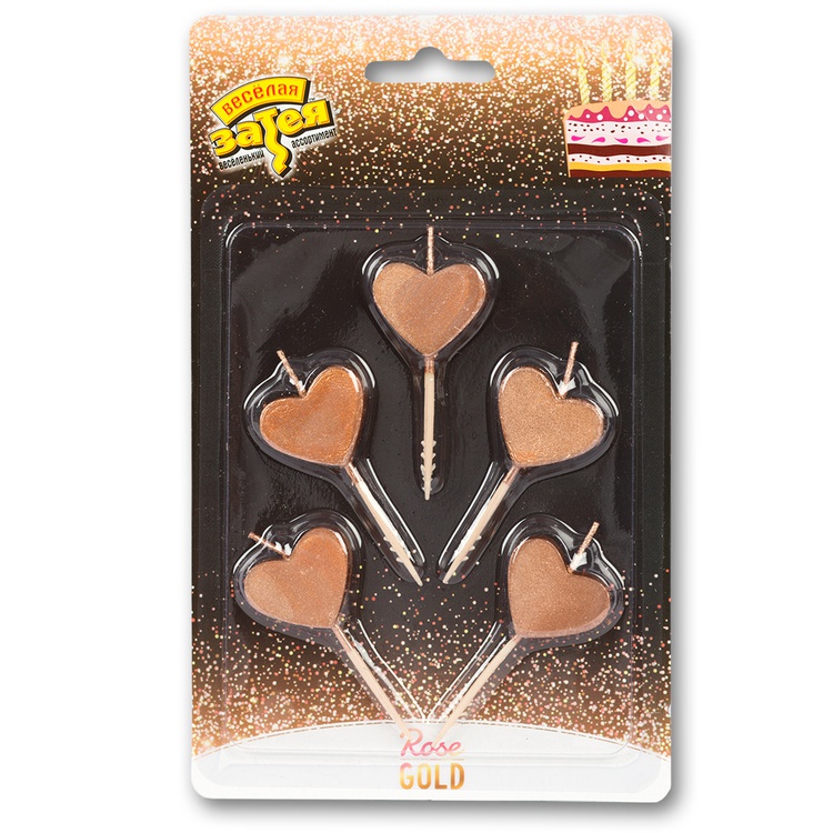 Выбирая свечи для торта "Весёлая затея" на пиках Сердца розовое Золото, вы делаете свой праздник ярким и незабываемым.