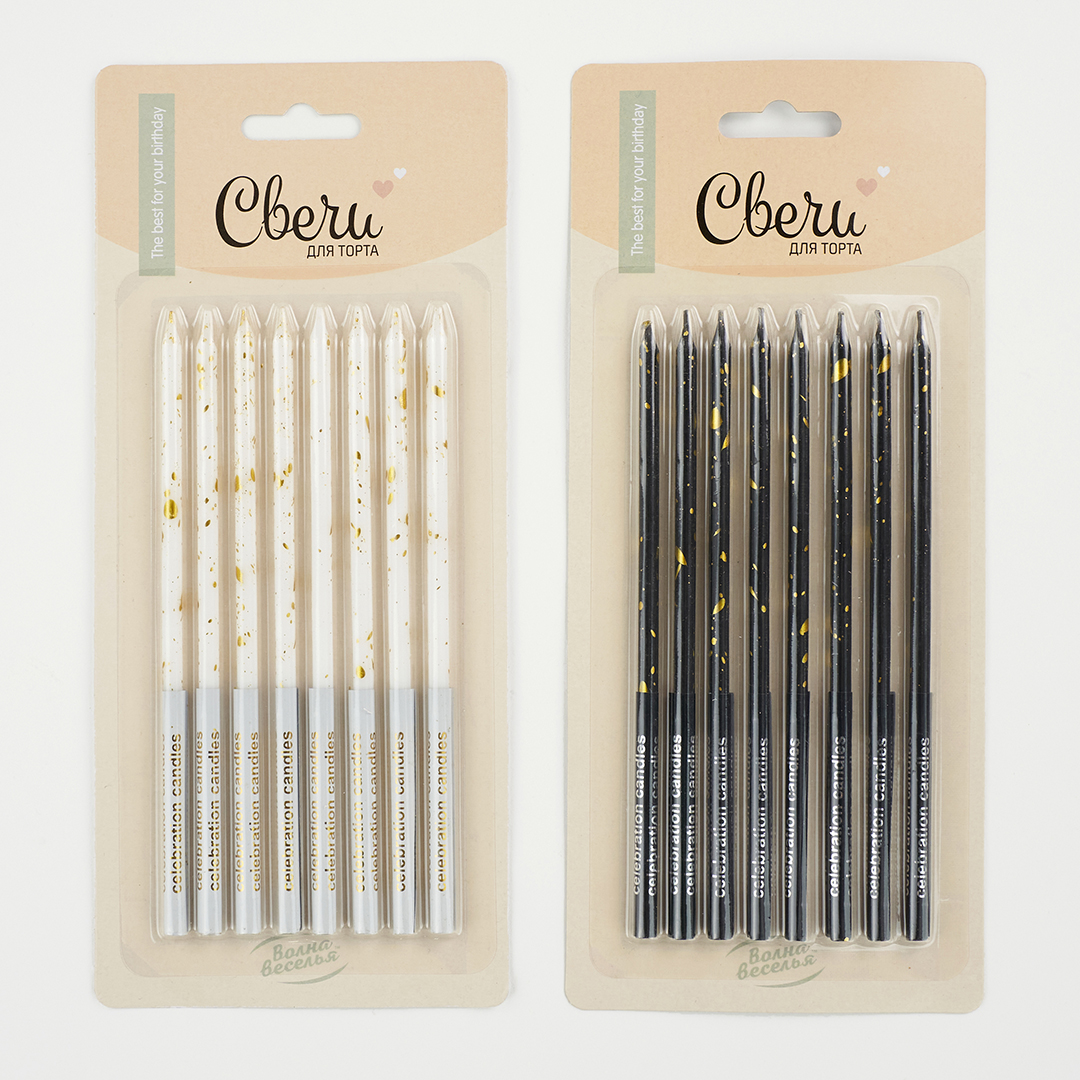Свечи для торта Элегантные искры золото/белый 15см 8шт