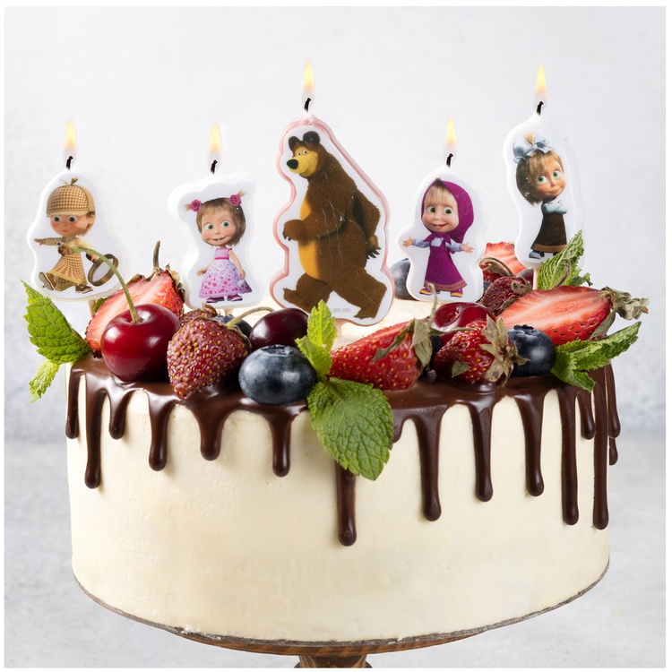 Свечи д/торта на пиках Маша и Медведь 5шт