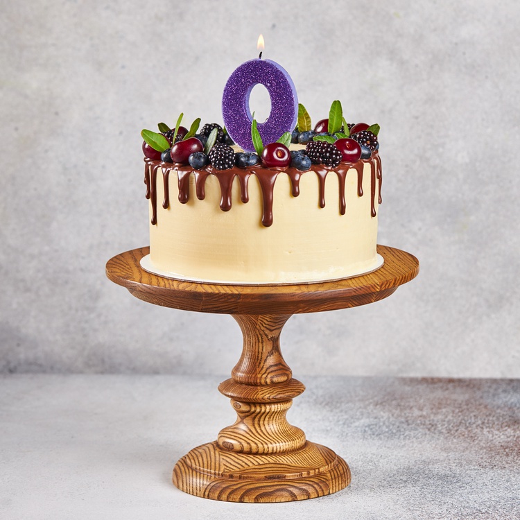 Фиолетовый цвет свечи и форма цифры "0" делают ее подходящей для украшения торта на день рождения или юбилей.