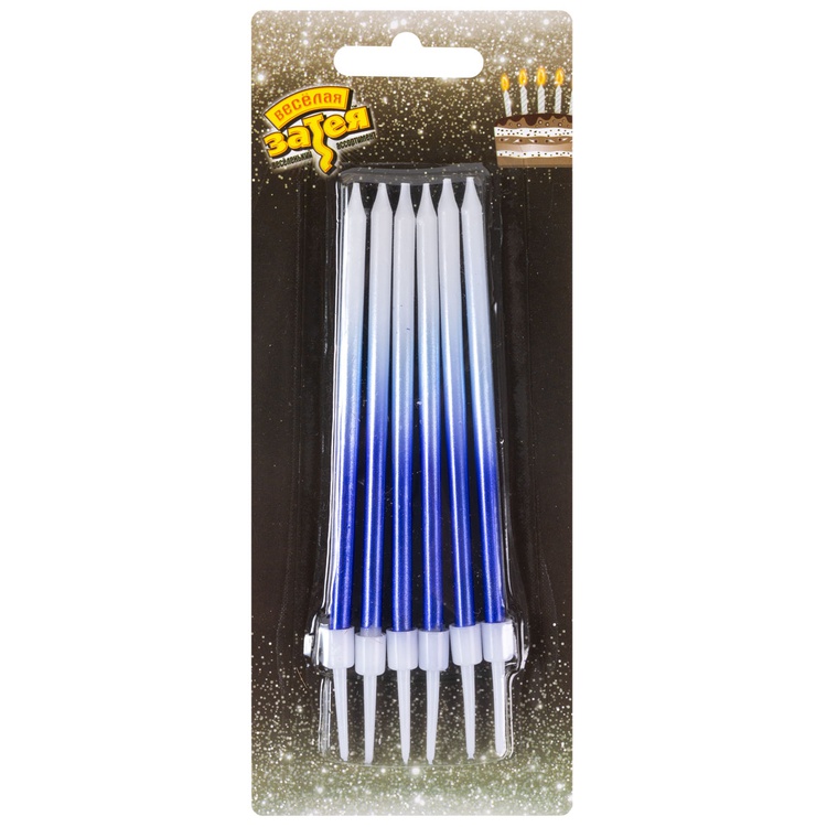 Создайте незабываемую атмосферу на своем празднике с помощью свечей для торта от компании Весёлая затея. Набор включает шесть свечей высотой 11 см, выполненных в красивом омбре оттенков голубого и синего. Эти свечи станут отличным украшением для любого торта и добавят особый штрих на день рождения или другое торжественное мероприятие.Свечи легко устанавливаются и надежно держатся на поверхности, а стильный дизайн сделает ваш десерт не только вкусным, но и визуально привлекательным. Они отлично подойдут для детских праздников, взрослых мероприятий и семейных встреч. Благодаря своим размерам, свечи гармонично смотрятся на торте, акцентируя внимание и создавая праздничное настроение.