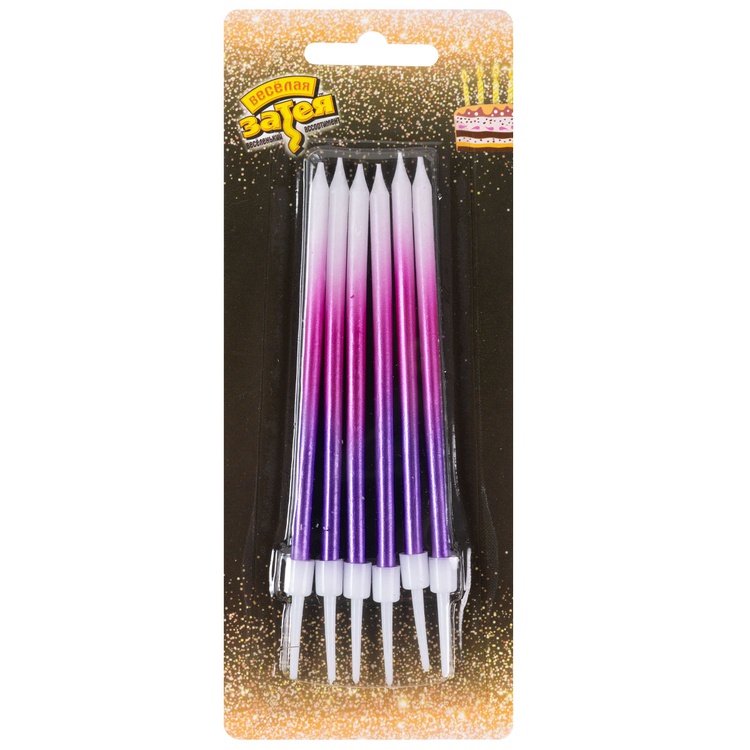 Свечи для торта с подставками Омбре роз/фиол 11см 6шт