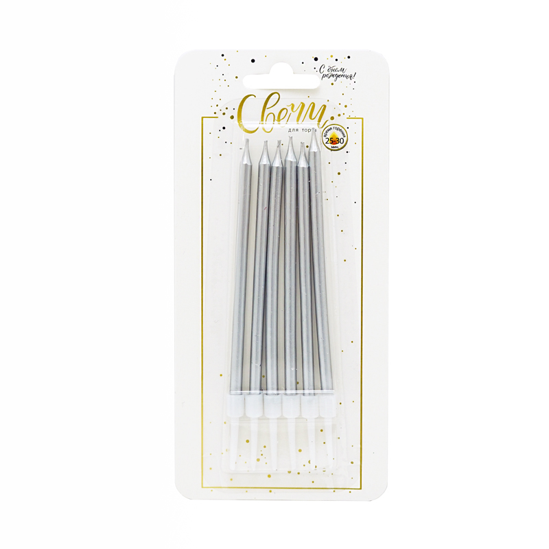 Свечи тортовые классические "Металл" Серебряные с держателями подойдут для празднования дня рождения всех возрастов.