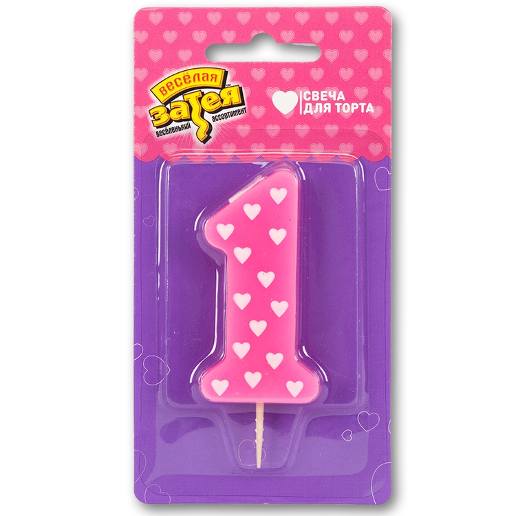 Свечи для торта "Весёлая затея" представляют собой декоративное украшение стола, которое станет отличным дополнением к праздничной атмосфере.Свеча-цифра "1" в форме розового сердца с сердечками на поверхности. Это стильное и оригинальное решение для украшения торта или десерта на день рождения девочки.