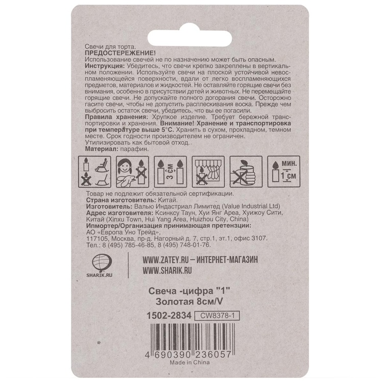 Высота свечи составляет 8 см, что позволяет легко вписать ее в любой торт или десерт.