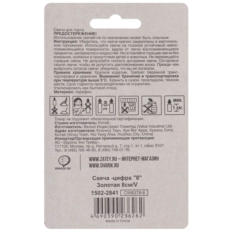 Свеча-цифра 8 золото от Весёлая затея станет отличным выбором для тех, кто хочет сделать свой праздник ярким и запоминающимся.