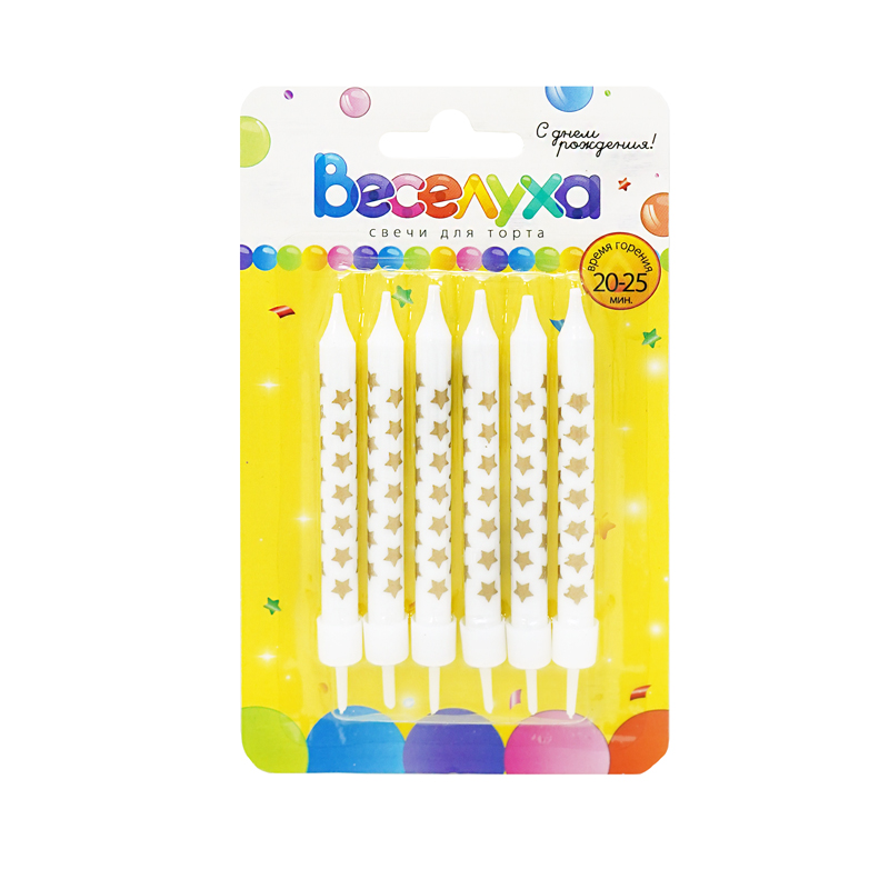 Набор свечей представлен коллекцией белых свечей с золотой печатью. Свечи идеально дополнят любое оформление праздника, будут смотреться легко и лаконично на любом торте. Уникальный размер 9,5 см., и гладкая форма свечи эстетично дополнит самые лаконичные дизайны праздничного торта.