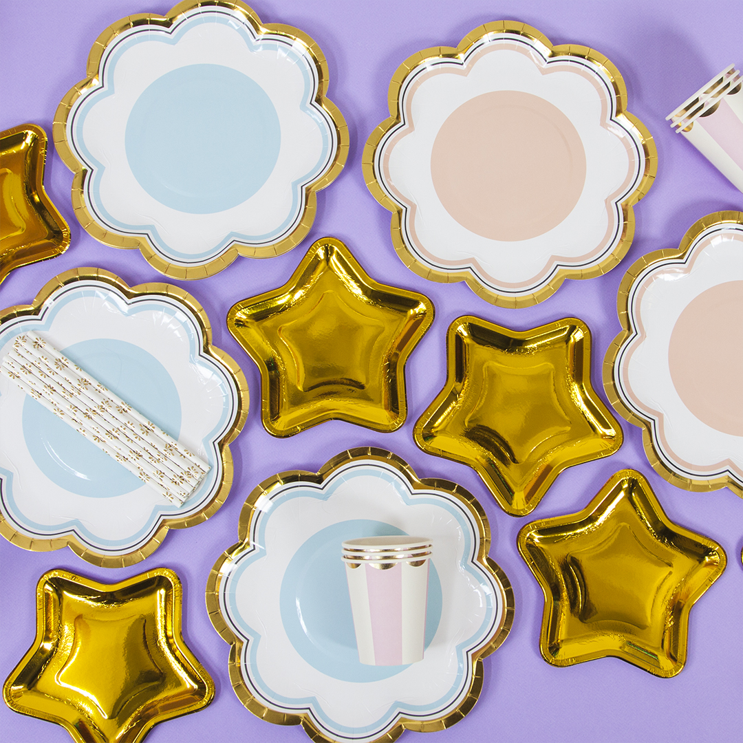 Мерцание и блеск фольгированных элементов на стильной одноразовой посуде станет дополнительным украшением торжества, а также поможет минимизировать время организации знаменательного события.Оригинально подобранный дизайн будет прекрасным атрибутом и для пикника на природе, и для мероприятия в офисе, и для любого события с близкими людьми.