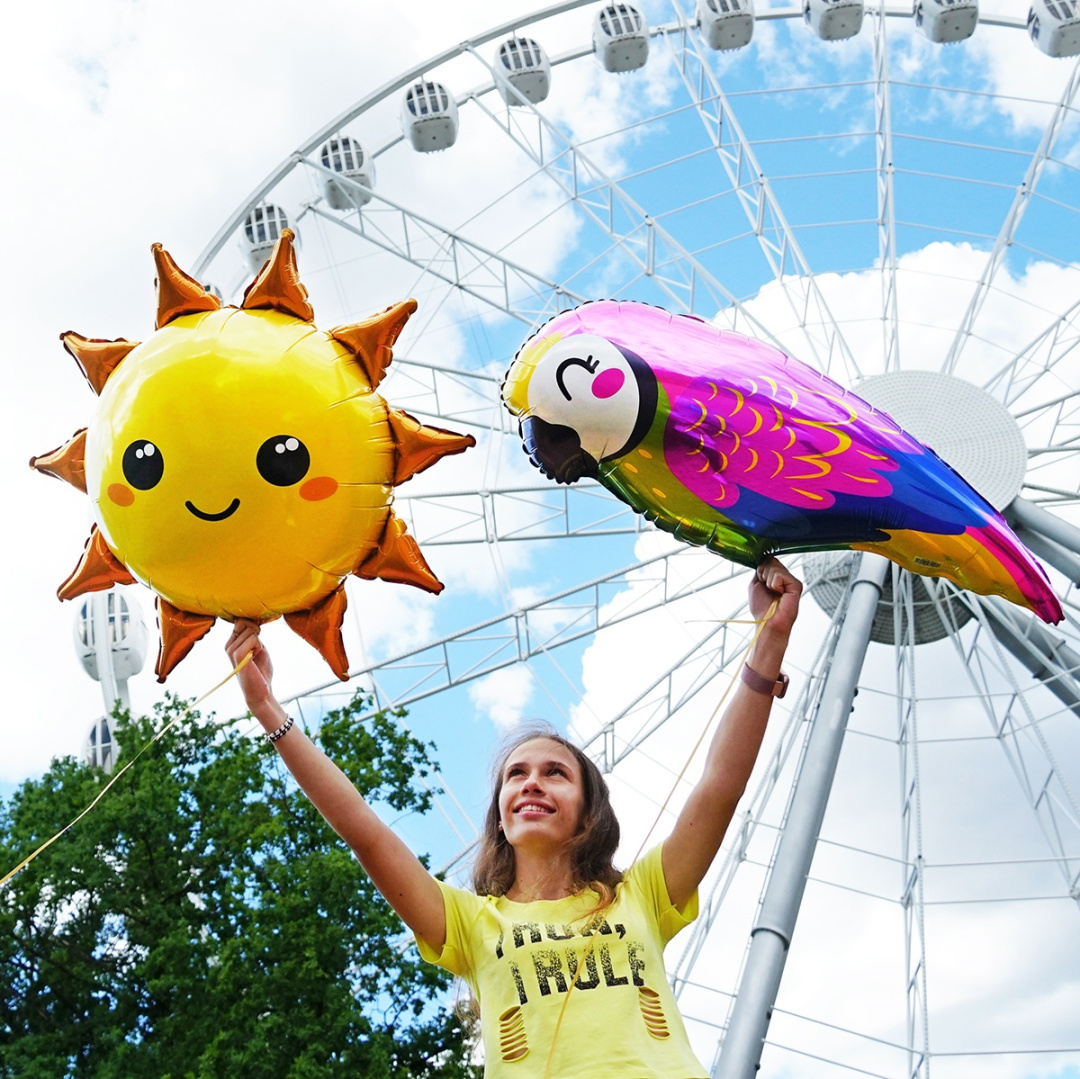 Большой фольгированный воздушный шар. Изготовлен из тонкой миларовой пленки, позволяющей шару не сдуваться в течение нескольких дней. Фольгированные воздушные шары надувают через клапан. Поэтому плотно надутый шар завязывать не требуется - обратный клапан хорошо удерживает гелий внутри шара. К шару привязывают ленту только для того, чтобы шар не улетел.Прекрасный вариант украсить помещение на детский День рождения.