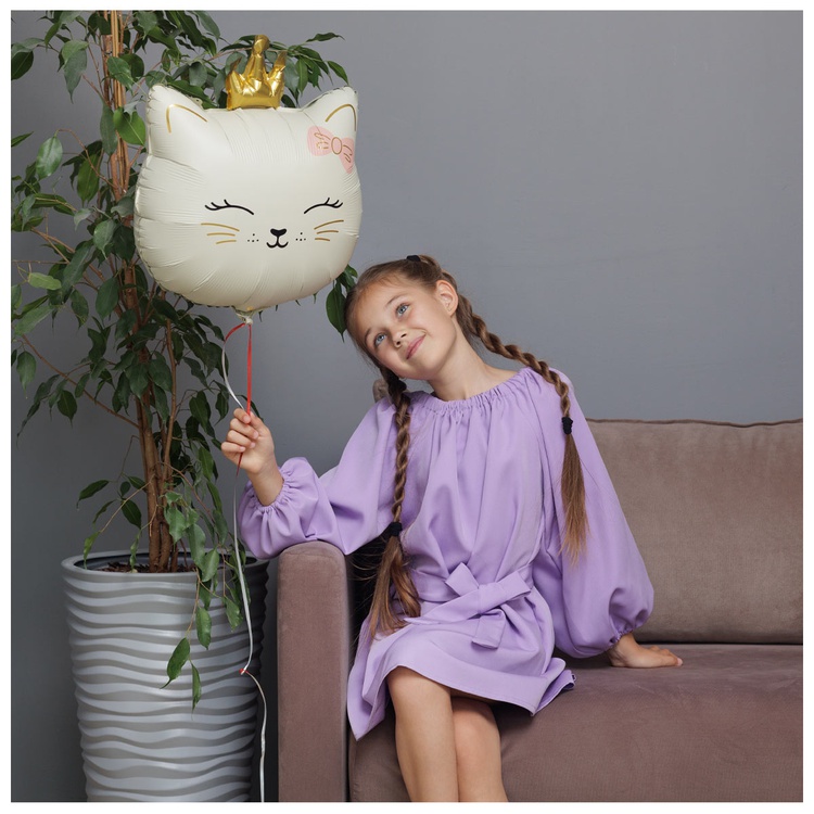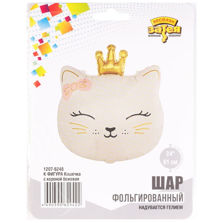 Воздушный шар Кошечка с короной бежевая
