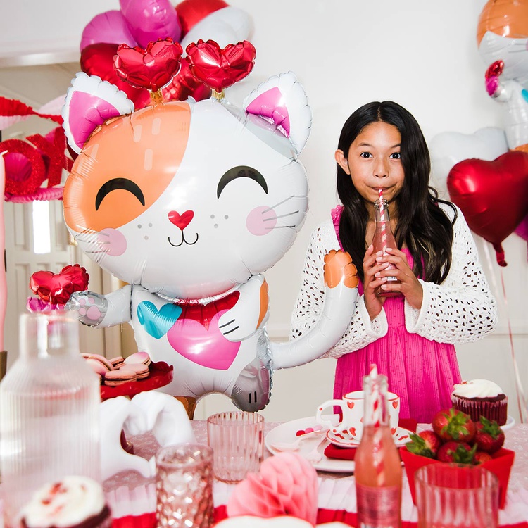 Этот воздушный шар в форме милого кота с сердцами на антенках станет великолепным украшением для любого праздника. Независимо от того, устраиваете ли вы день рождения, девичник или тематическую вечеринку, этот шар добавит веселья и радости в атмосферу. Яркие цвета и оригинальный дизайн обязательно привлекут внимание гостей, особенно детей.Большой фольгированный воздушный шар. Изготовлен из тонкой миларовой пленки, позволяющей шару не сдуваться в течение нескольких дней. Фольгированные воздушные шары надувают через клапан. Поэтому плотно надутый шар завязывать не требуется - обратный клапан хорошо удерживает гелий внутри шара. К шару привязывают ленту только для того, чтобы шар не улетел.