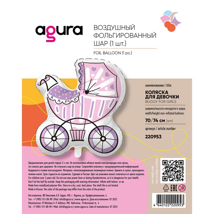 Воздушный шар Коляска для девочки