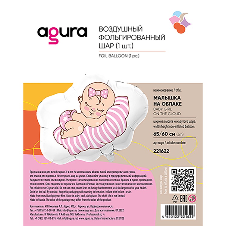 Большой фольгированный воздушный шар. Изготовлен из тонкой миларовой пленки, позволяющей шару не сдуваться в течение нескольких дней. Фольгированные воздушные шары надувают через клапан. Поэтому плотно надутый шар завязывать не требуется - обратный клапан хорошо удерживает гелий внутри шара. К шару привязывают ленту только для того, чтобы шар не улетел.Прекрасный вариант украсить помещение на детский День рождения.