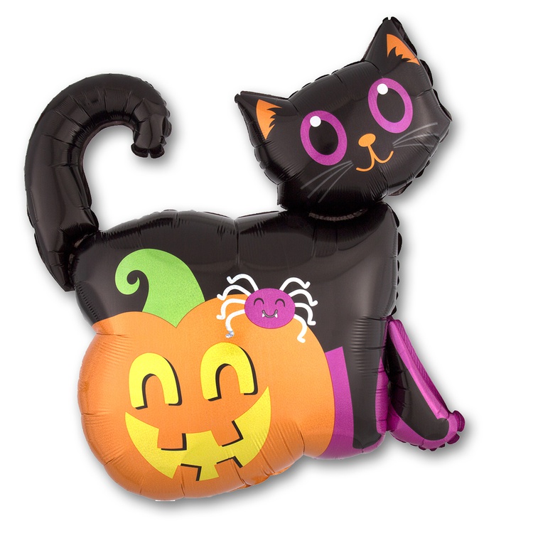 Воздушный шар Кот черный и Тыква блеск