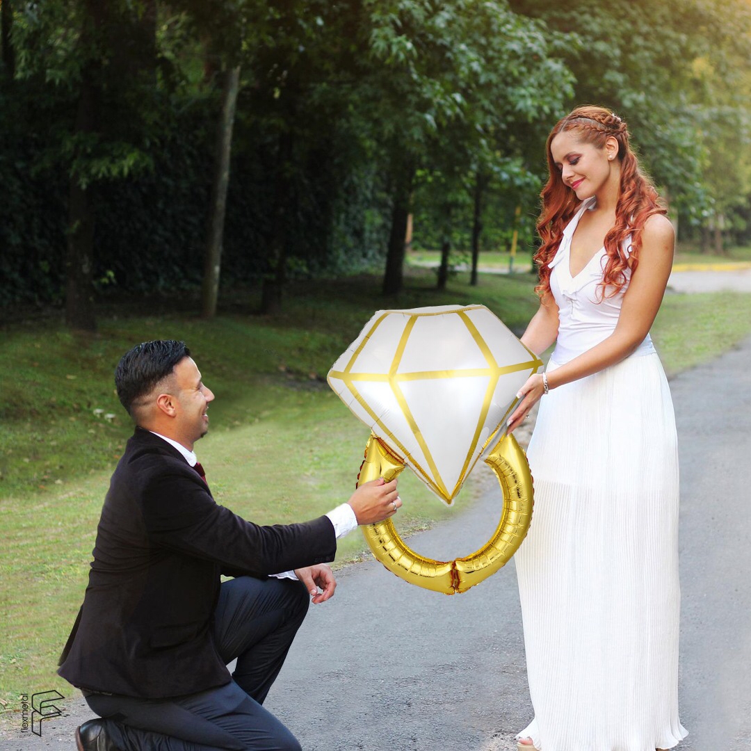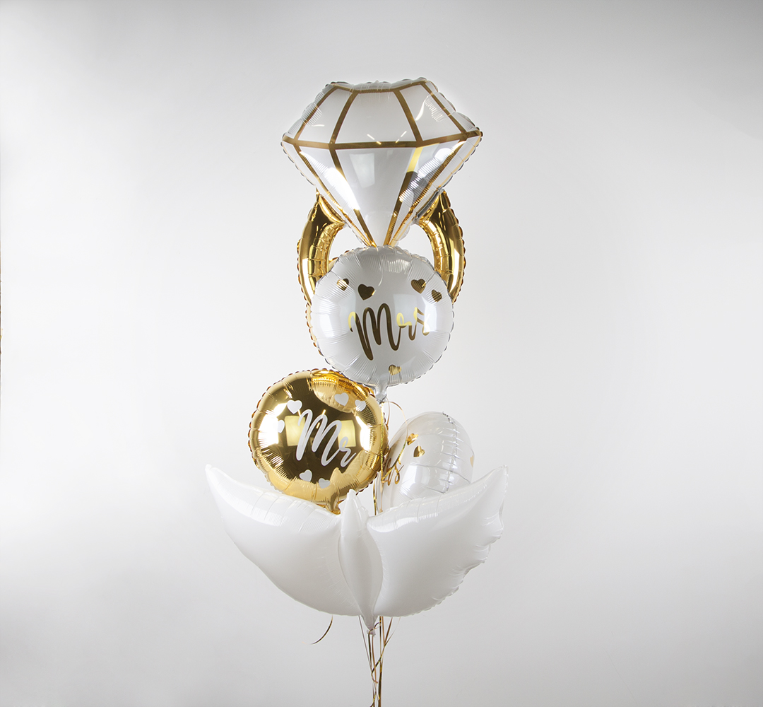 Воздушный шар Кольцо с бриллиантом белый/золото