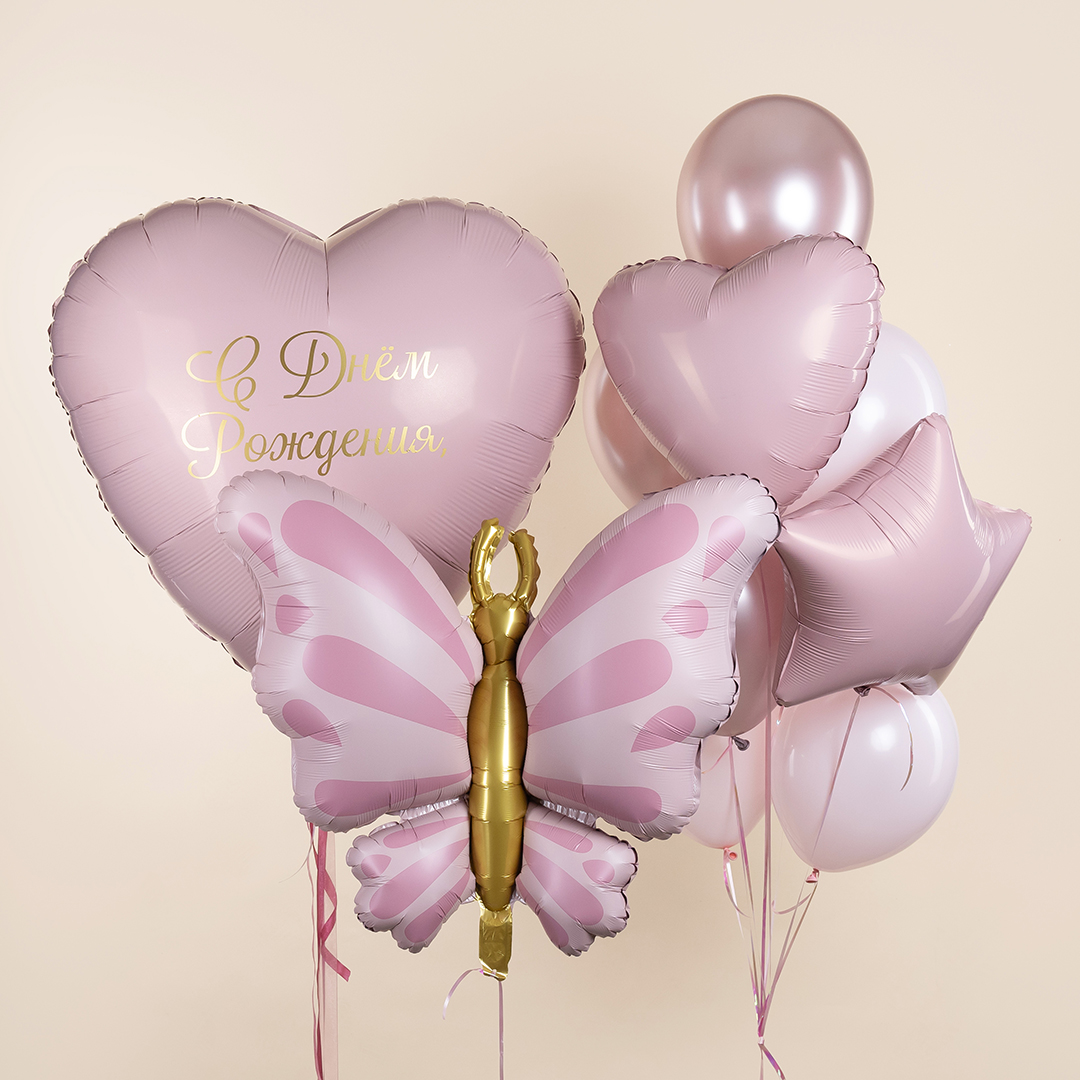 Воздушный шар Бабочка изящная розовый сатин