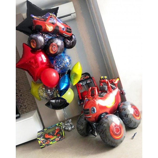 Ходячий воздушный шар. Изготовлен из тонкой лавсановой плёнки. К нижней части приклеплены небольние грузики, за счёт которых шарик не улетает, а свободно перемещается по комнате от лёгкого движения воздуха.Рекомендуется наполнение гелием.