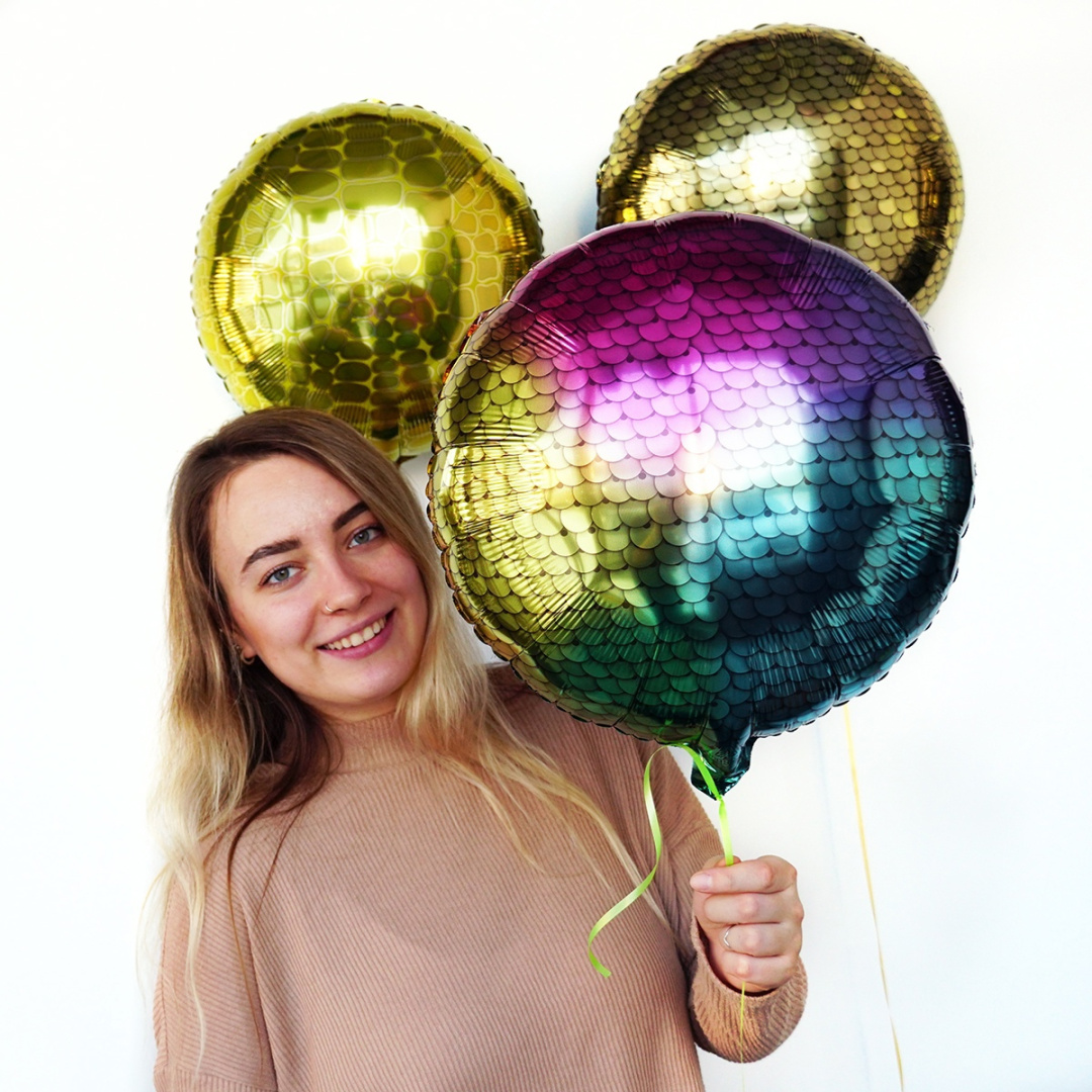 Фольгированный воздушный шар. Изготовлен из тонкой миларовой пленки, которая хорошо удерживает гелий в течение нескольких дней. Имеет встроенный клапан. Поэтому плотно надутый шар завязывать не требуется - обратный клапан удерживает гелий внутри шара. Ленту к шару привязывают только для того, чтобы шар не улетел.Шар можно надуть воздухом, но если вы хотите, чтобы шар летал его необходимо наполнить гелием.