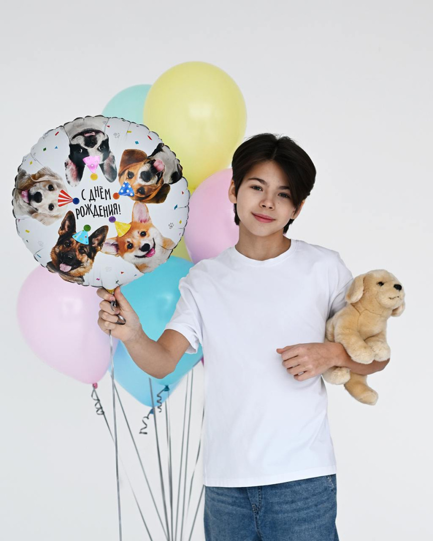 Фольгированный воздушный шар собаки фотографичные. Изготовлен из тонкой миларовой пленки, которая хорошо удерживает гелий в течение нескольких дней. Имеет встроенный клапан. Поэтому плотно надутый шар завязывать не требуется - обратный клапан удерживает гелий внутри и позволяет использовать шар повторно. Ленту к шару привязывают только для того, чтобы шар не улетел.Шарики идеально подойдут для: оформления мероприятий и фотозон, создания композиций из воздушных шаров, подарка ребёнку на день рождения.