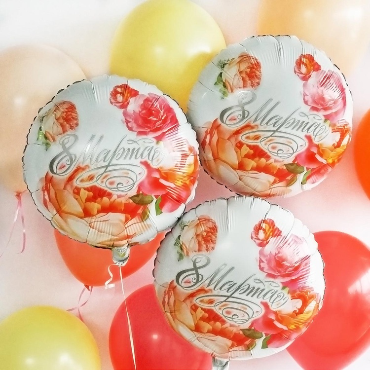 Воздушный шар 8 МАРТА пионы