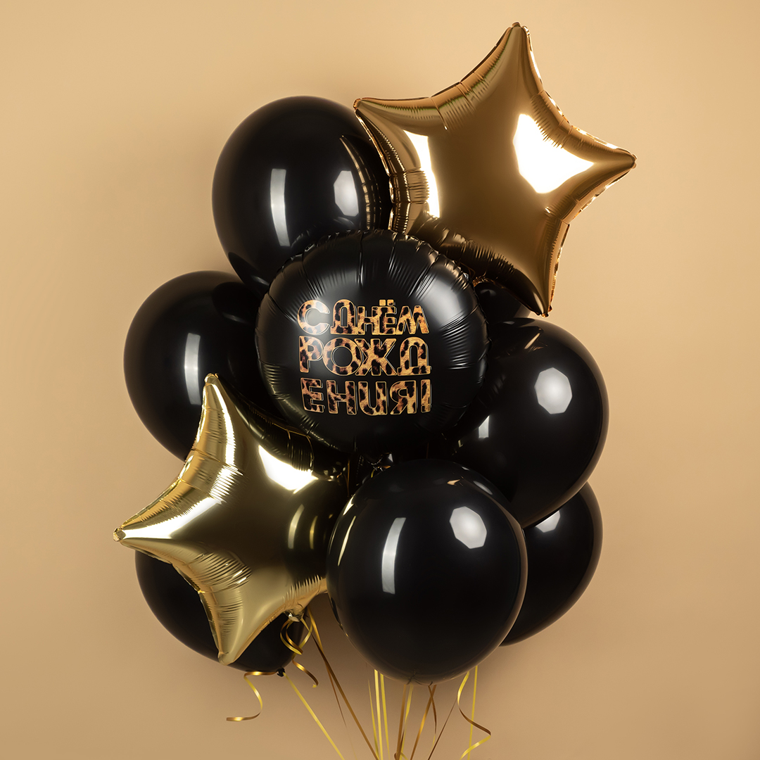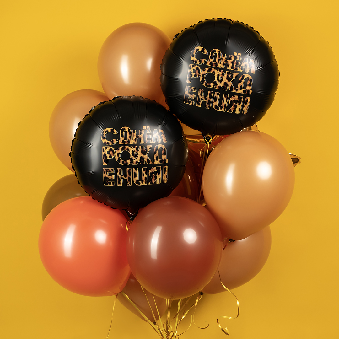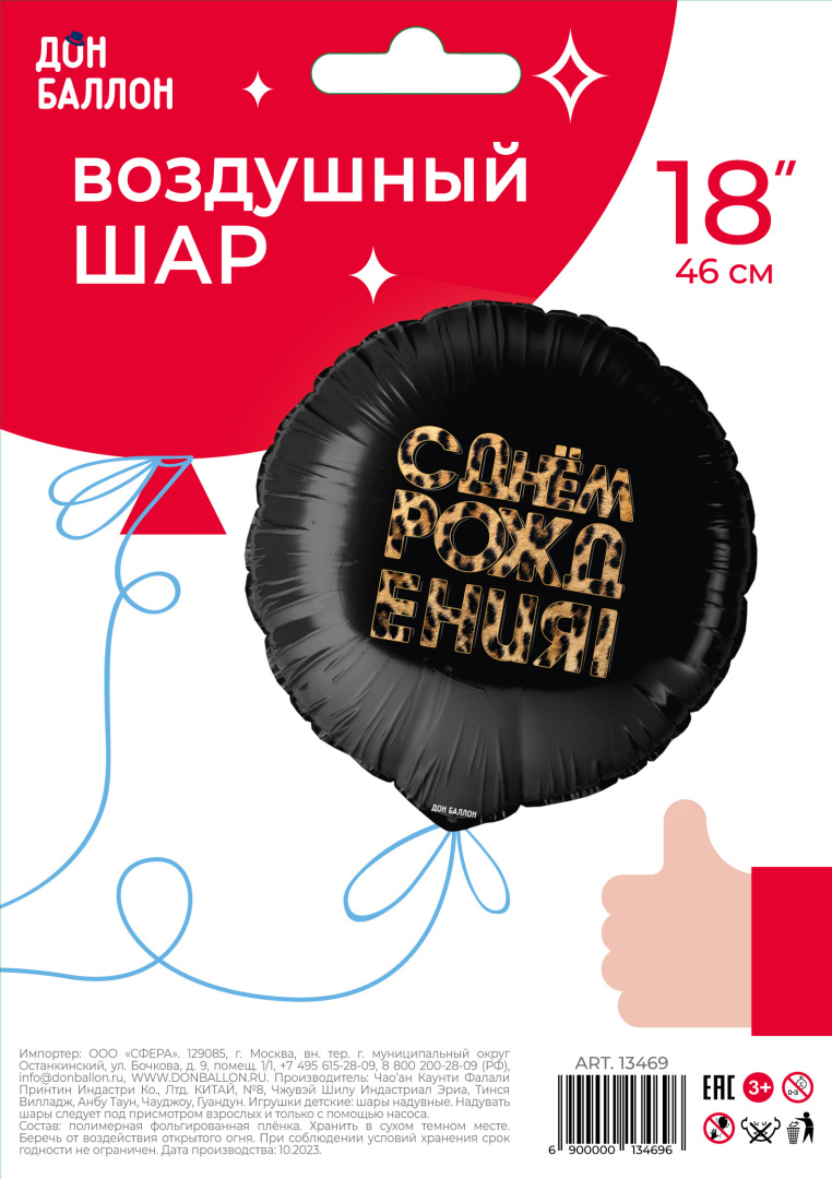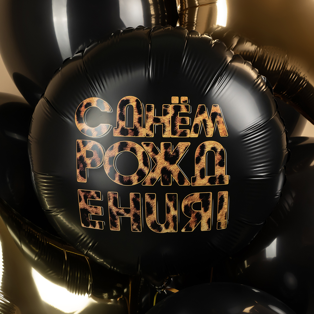 Воздушный шар С Днем Рождения! леопардовый принт черный