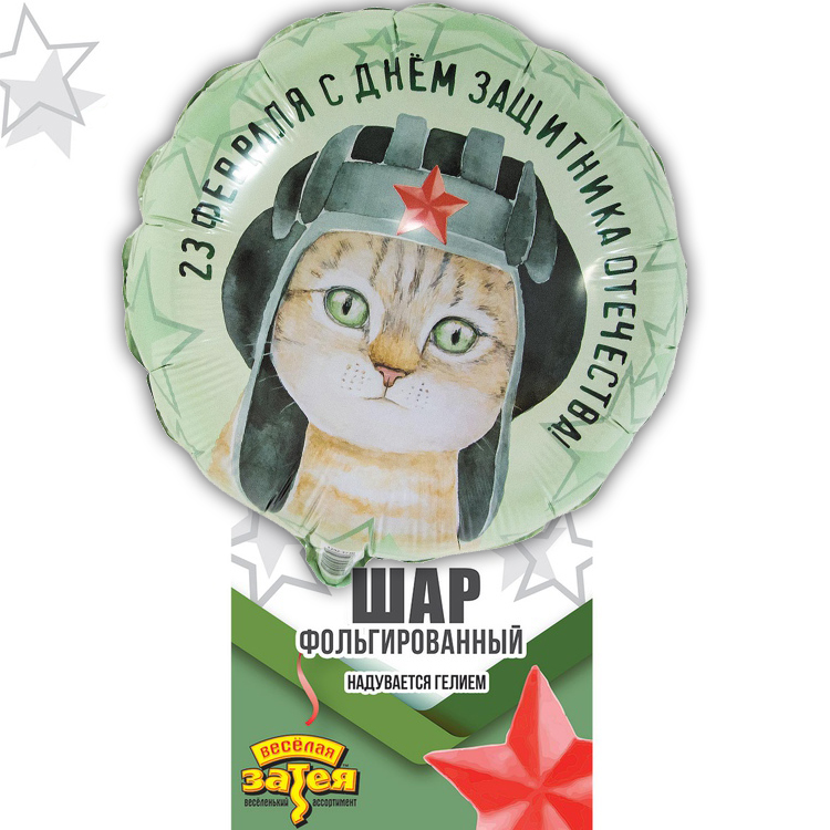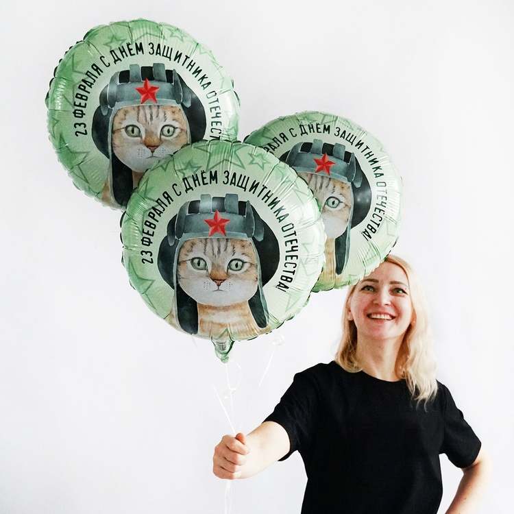 Воздушный шар 23 ФЕВРАЛЯ Кот в шлемофоне