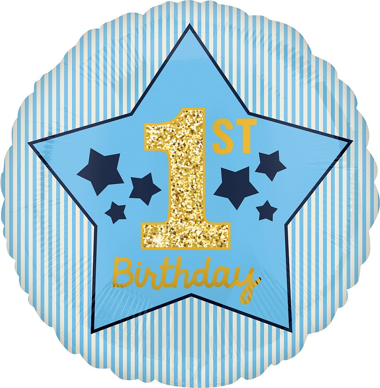 Воздушный шар 1-й ДР Мальчик Звезды BlueGold