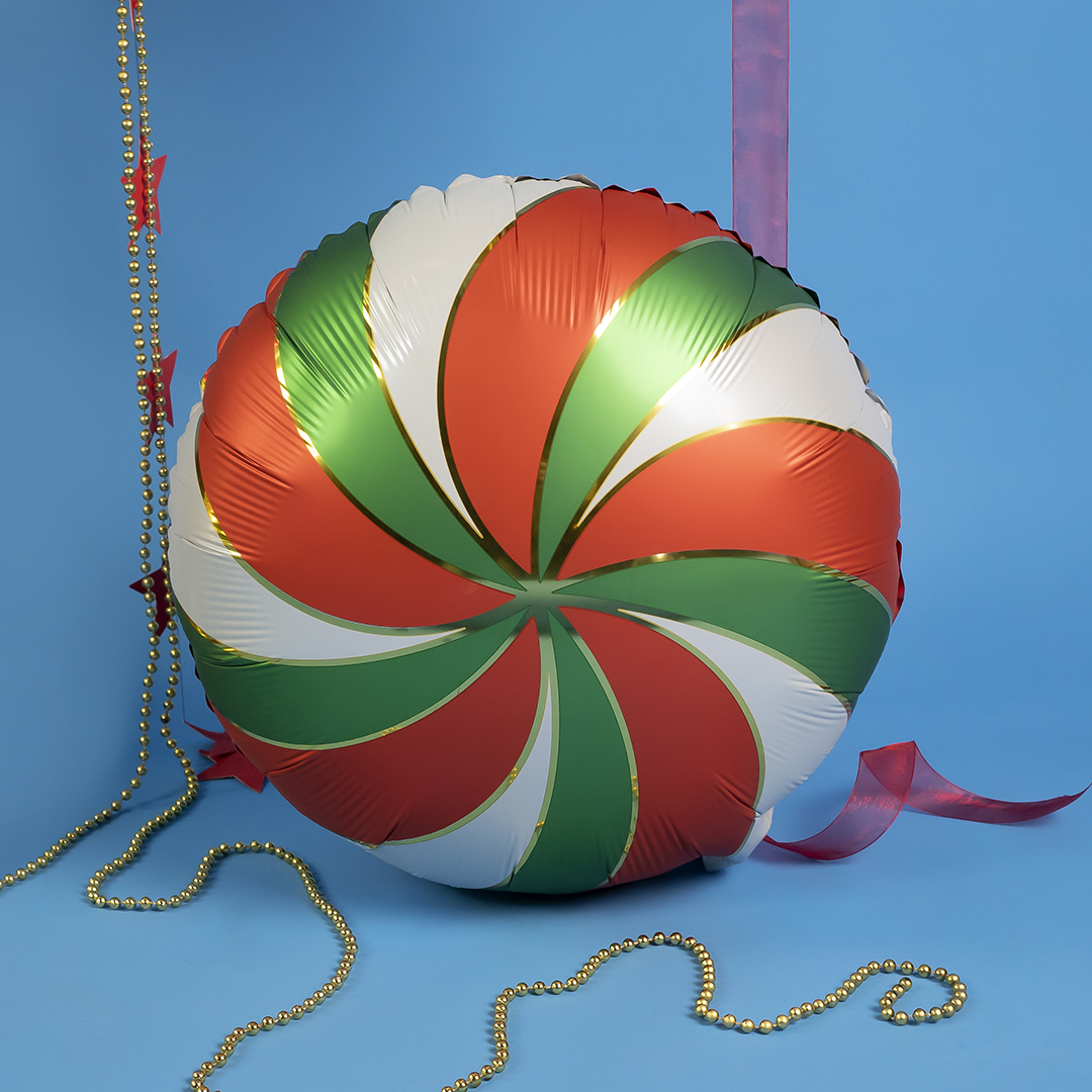 Воздушный шар Леденец золотая полоска бел/кр/зел