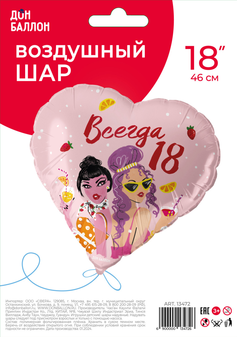 Воздушный шар Сердце Всегда 18
