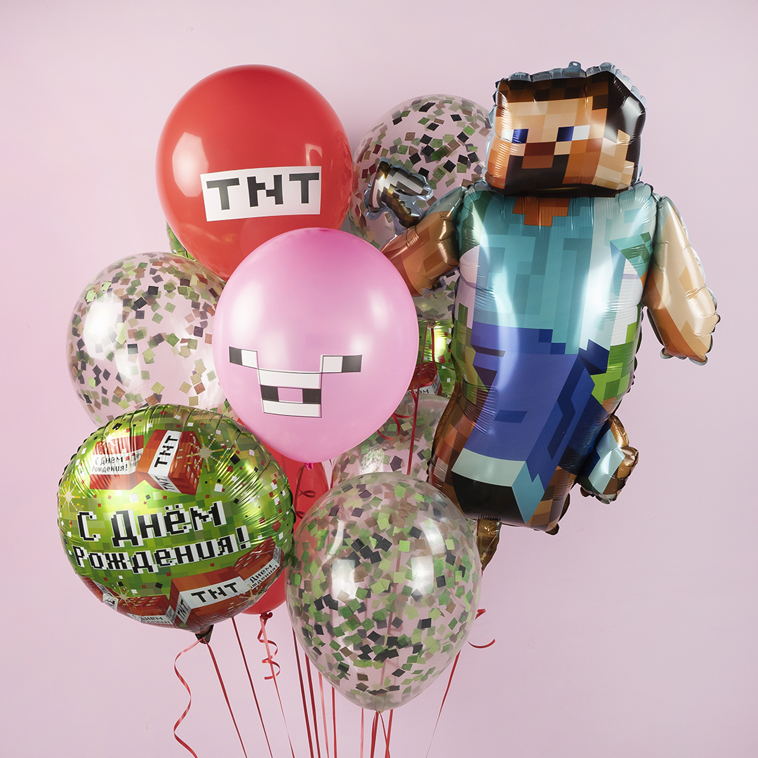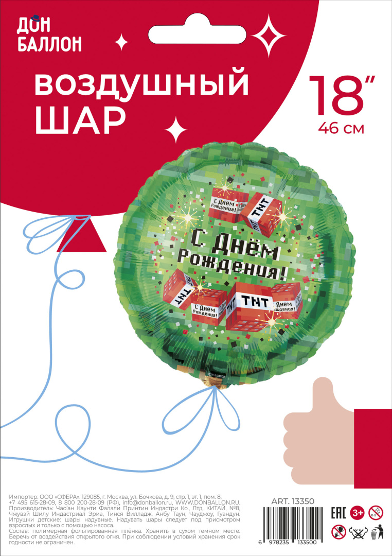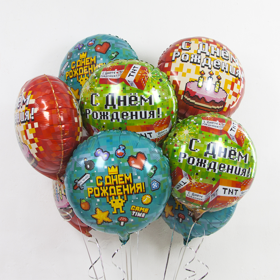 Воздушный шар Пиксели С Днем Рождения! зеленый