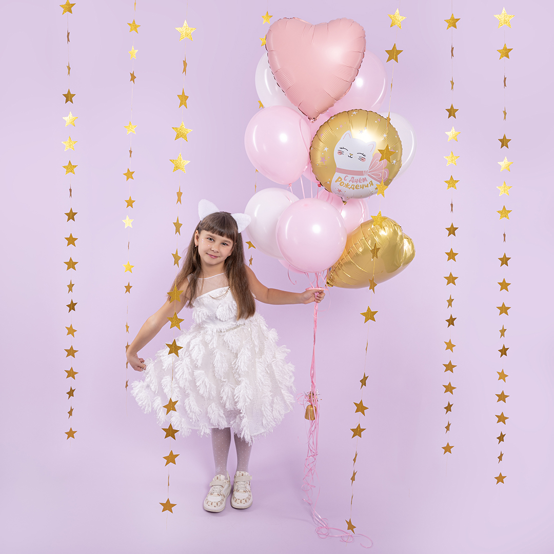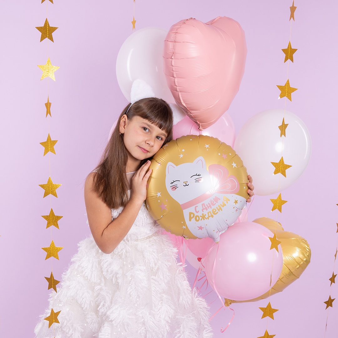 Фольгированный воздушный шар. Изготовлен из тонкой миларовой пленки, которая хорошо удерживает гелий в течение нескольких дней. Имеет встроенный клапан. Поэтому плотно надутый шар завязывать не требуется - обратный клапан удерживает гелий внутри и позволяет использовать шар повторно. Ленту к шару привязывают только для того, чтобы шар не улетел.Шарики идеально подойдут для: оформления мероприятий и фотозон, создания композиций из воздушных шаров, подарка ребёнку на день рождения.