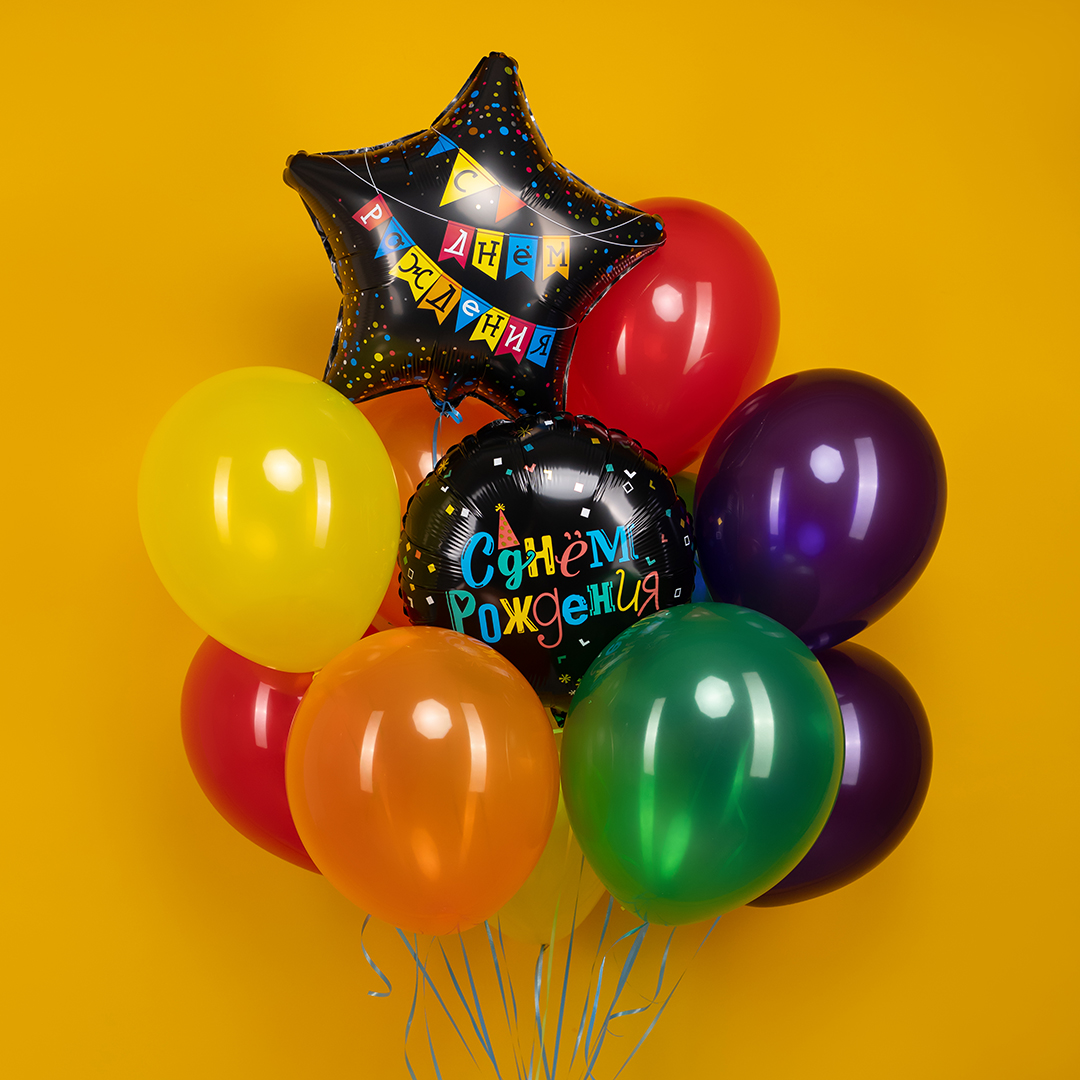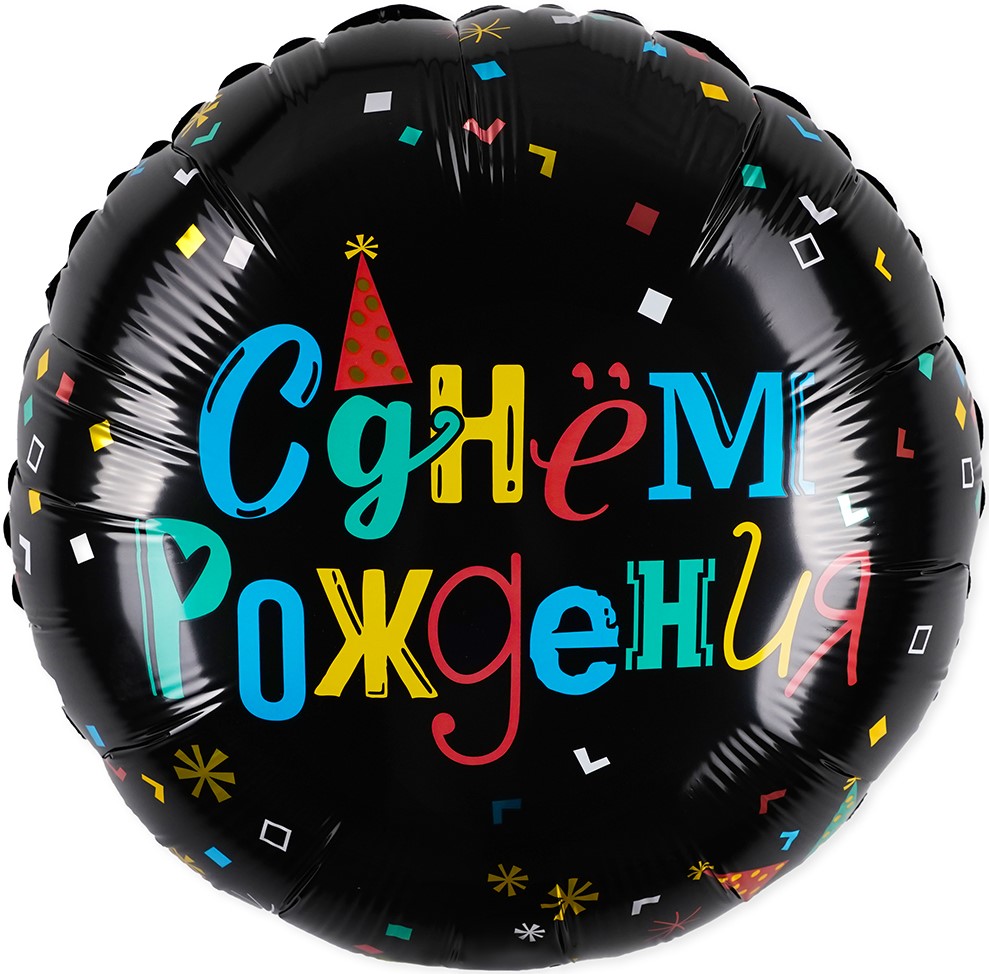 Воздушный шар С Днем Рождения яркие буквы черный