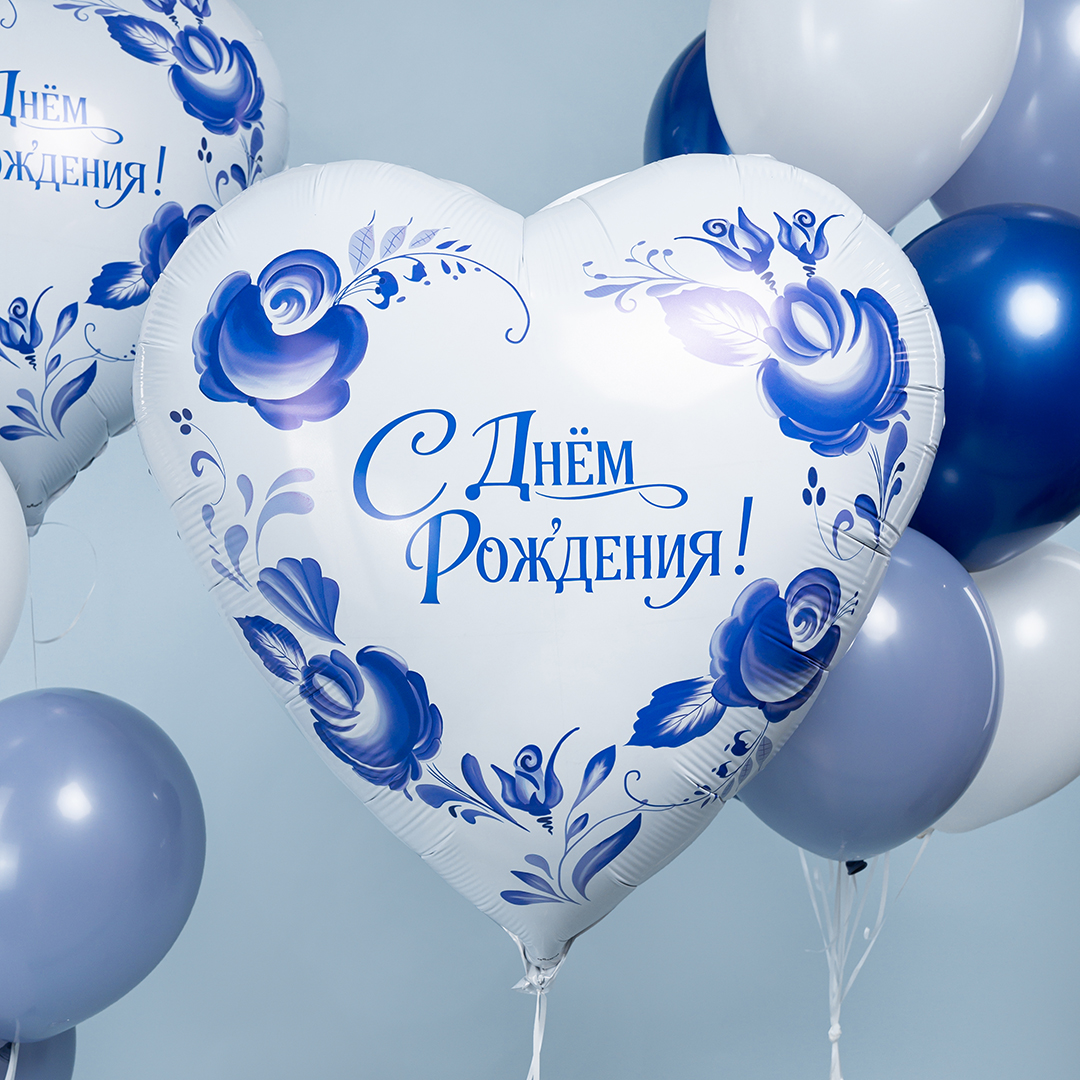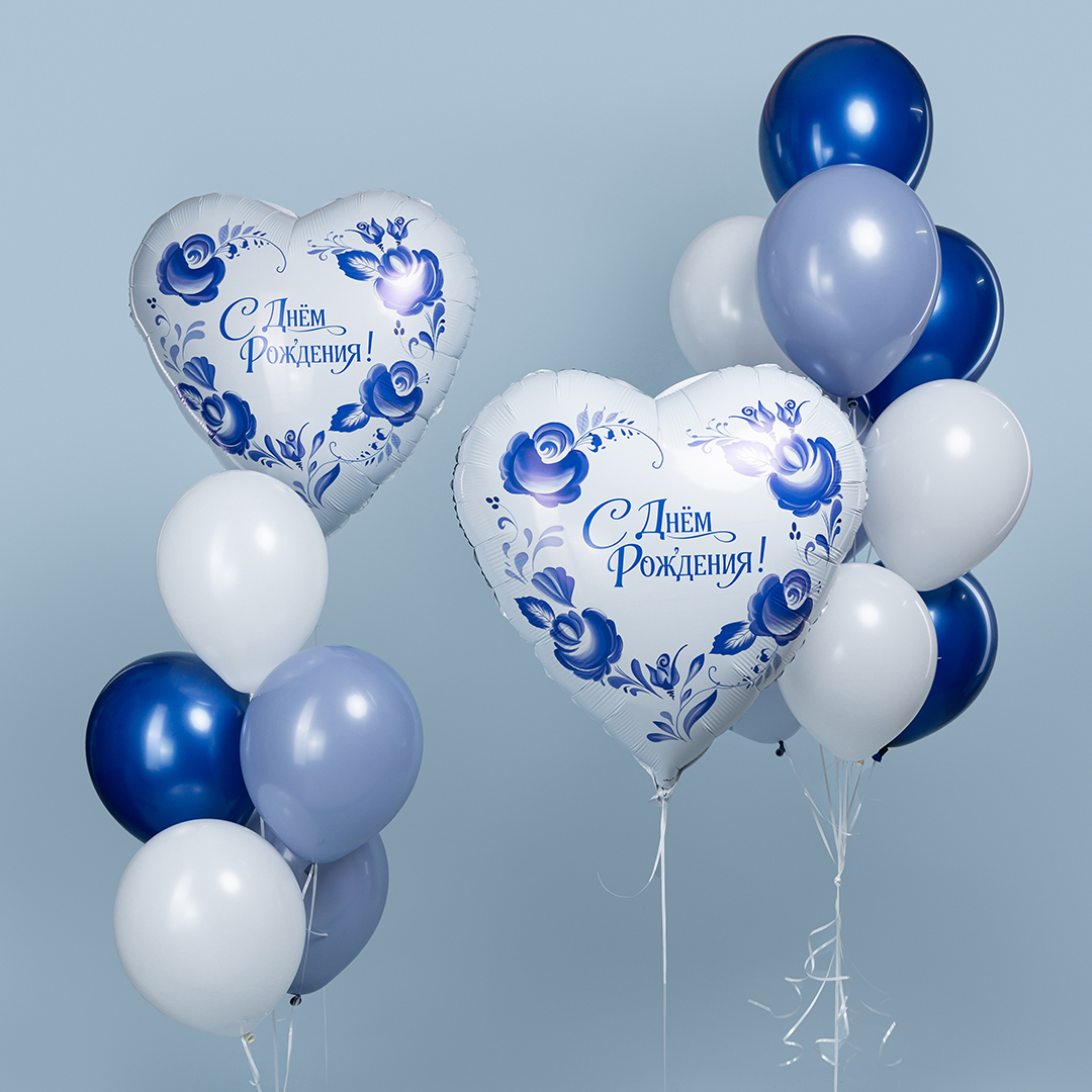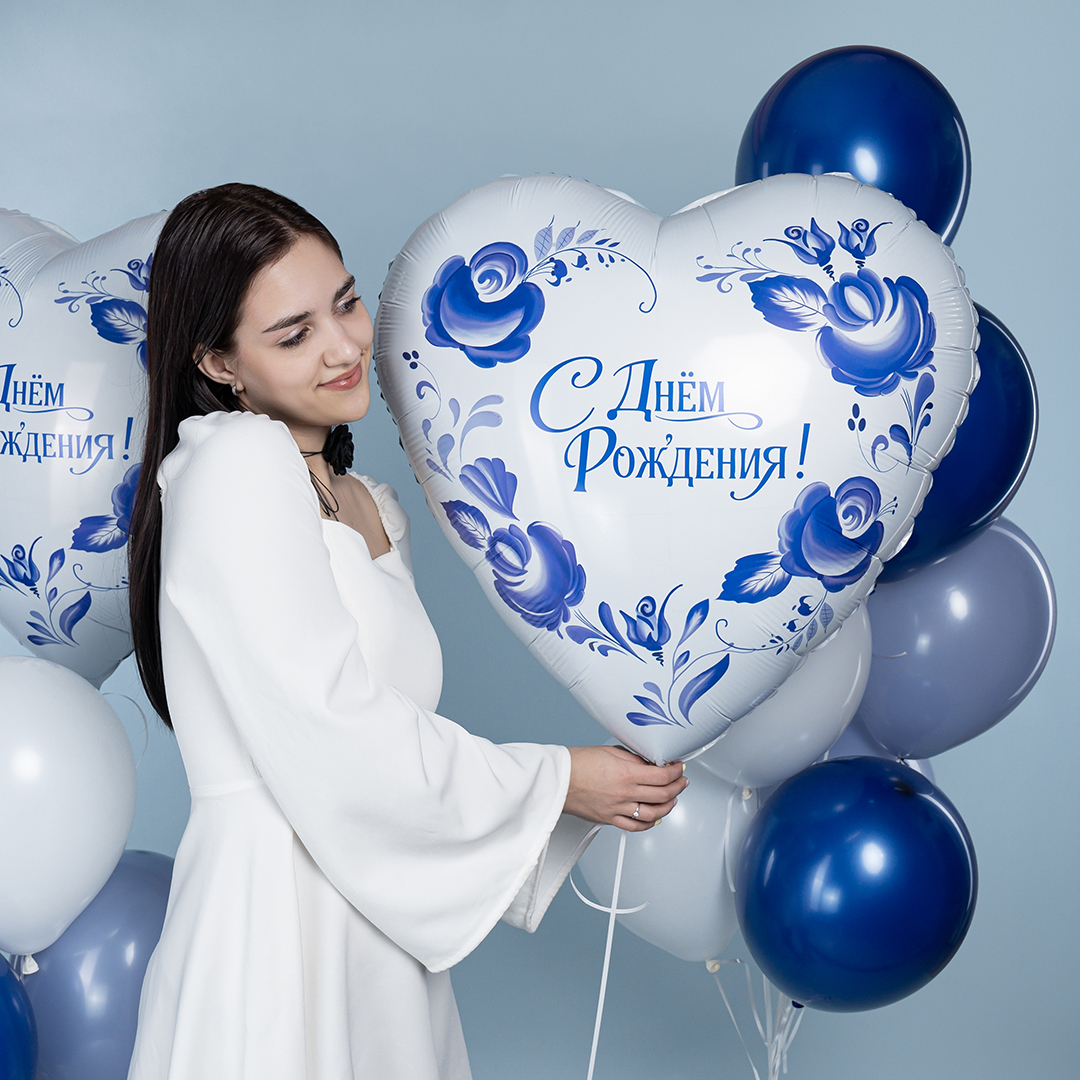 Шар 30'' Сердце Фарфоровый букет