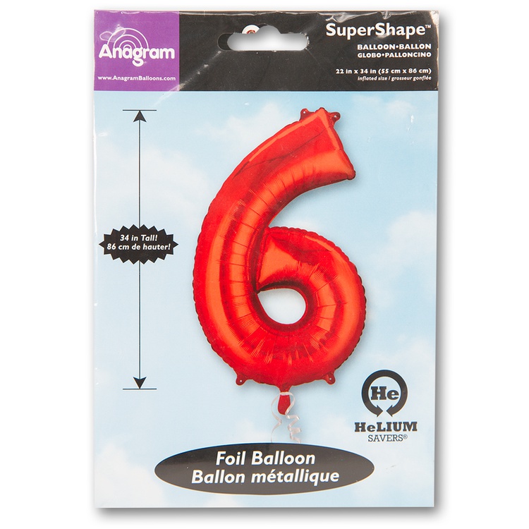 Воздушный шар цифра 6 красный 86см США