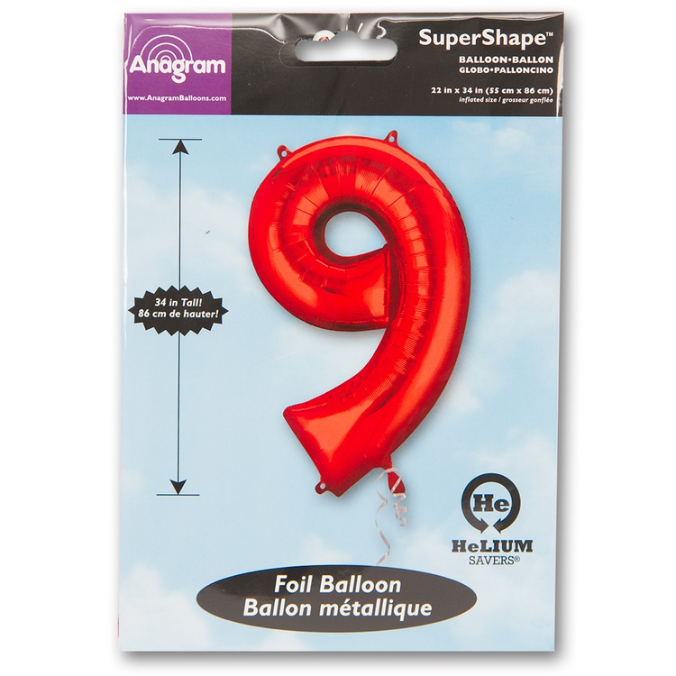 Воздушный шар цифра 9 красный 86см США