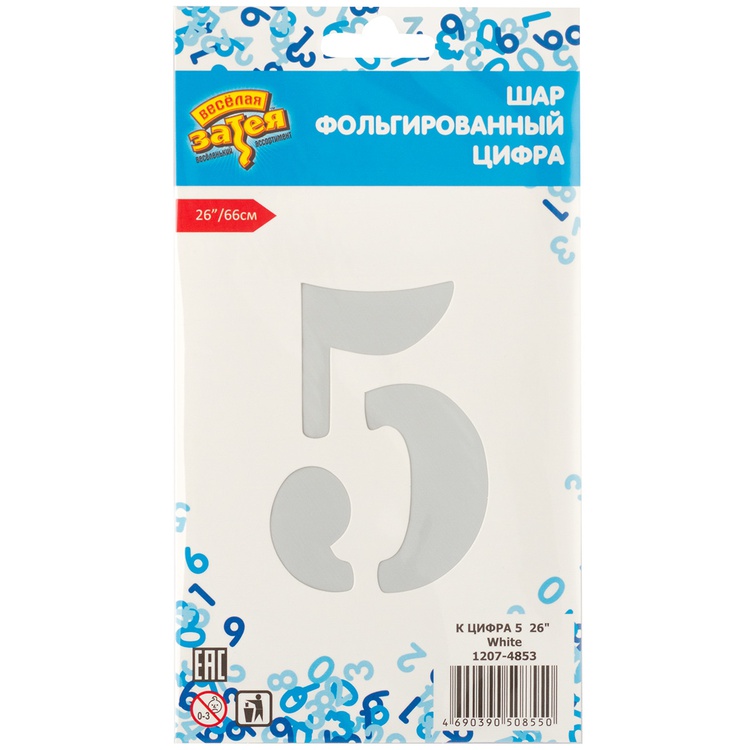 Воздушный шар цифра 5 белый 66см Китай