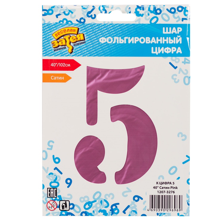 Воздушный шар цифра 5 сатин розовый 86см Китай