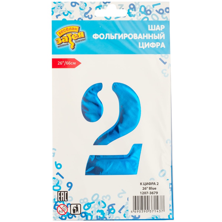 Воздушный шар цифра 2 синий 66см Китай