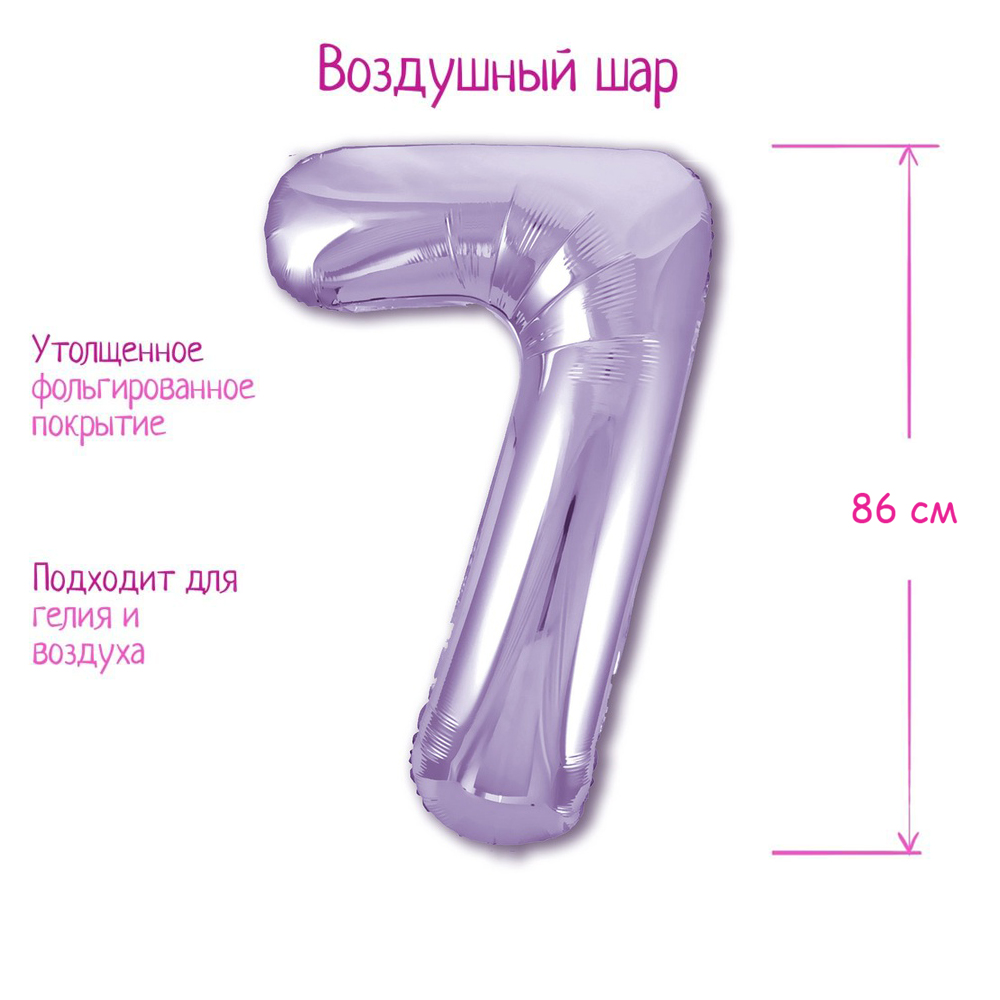 Воздушный шар цифра 7 пастель лаванда 86см Россия