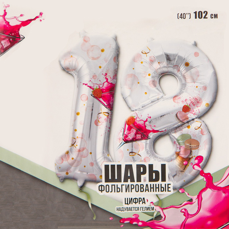 Воздушный шар цифра 18 совершеннолетие macaron 86см Китай