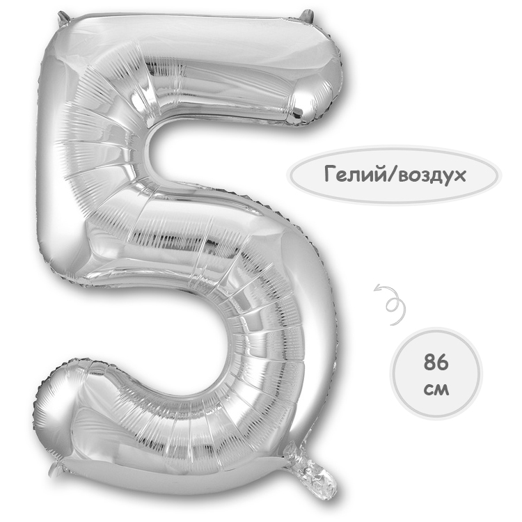Воздушный шар цифра 5 серебро 86см Китай