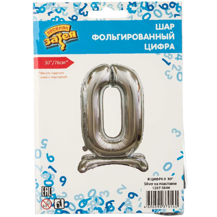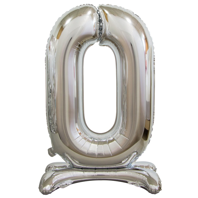 Воздушный шар цифра 0 серебро на подставке Китай