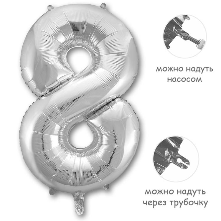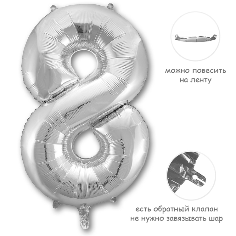 Воздушный шар цифра 8 серебро 86см Китай