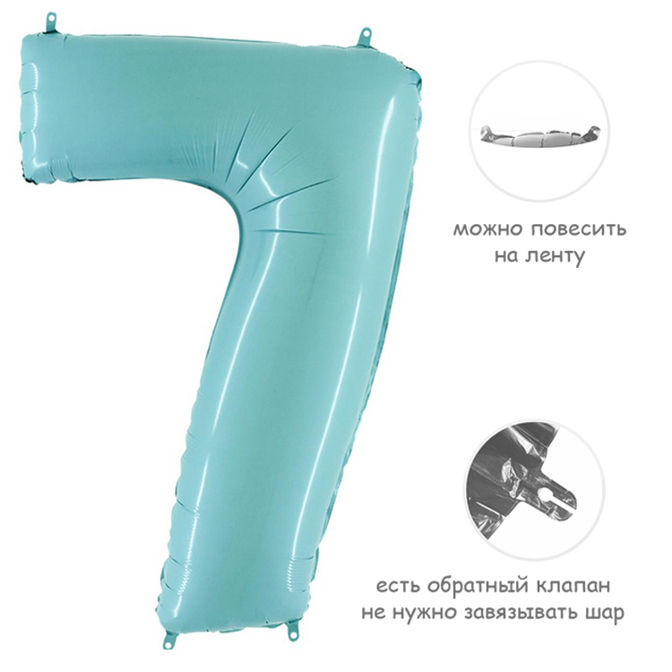 Воздушный шар цифра 7 пастель голубой 86см Италия