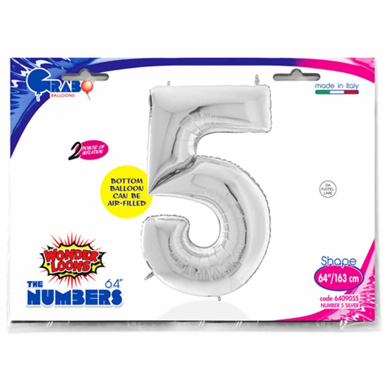 Воздушный шар цифра 5 серебро 162см Италия
