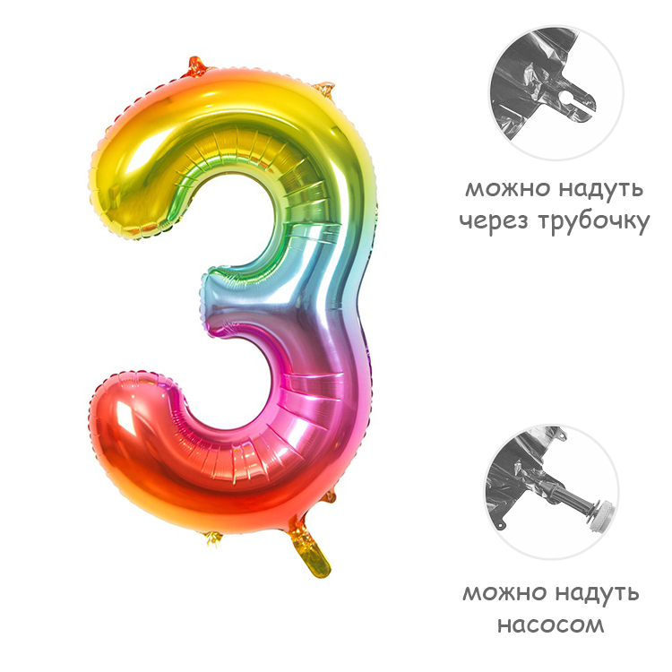 Воздушный шар цифра 3 металлик радуга 86см Китай