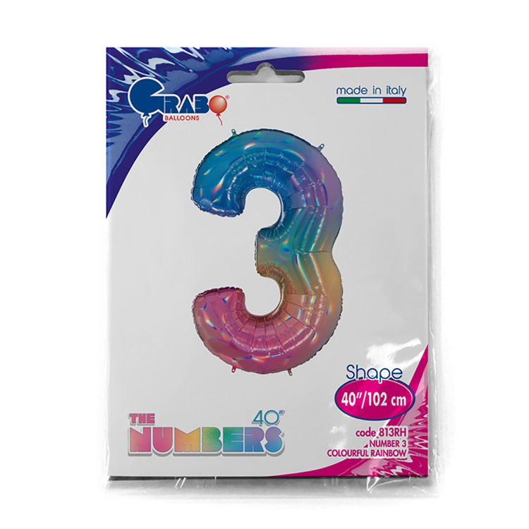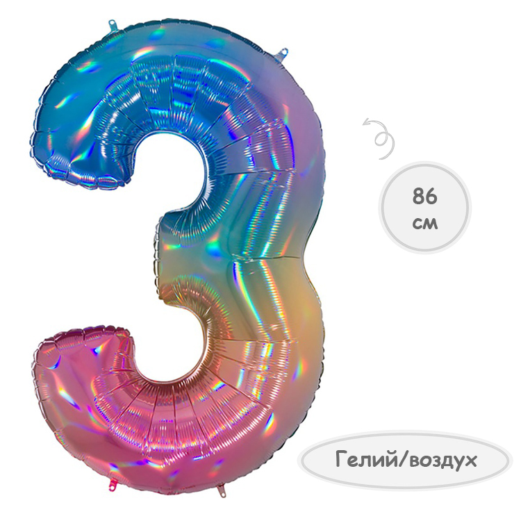 Воздушный шар цифра 3 радуга переливы 86см Италия