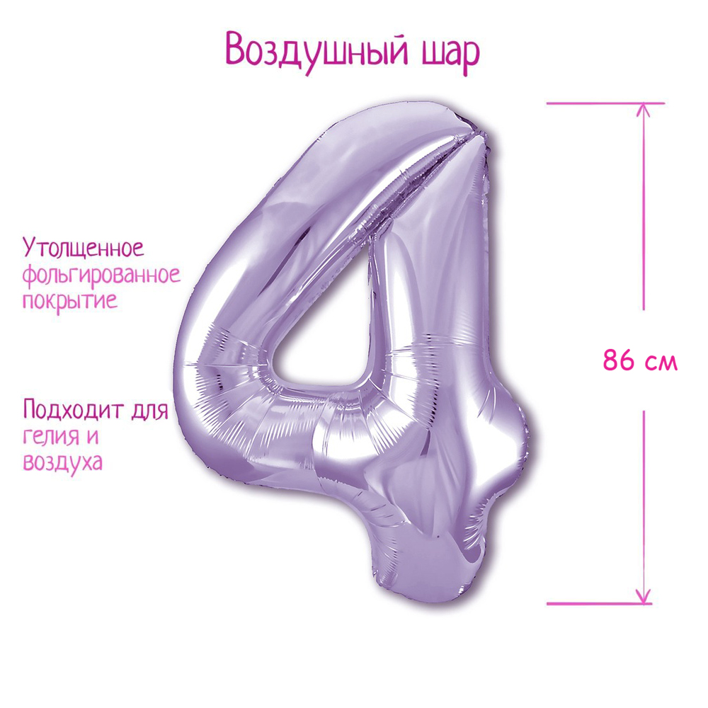 Воздушный шар цифра 4 пастель лаванда 86см Россия