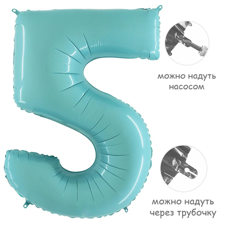 Воздушный шар цифра 5 пастель голубой 86см Италия