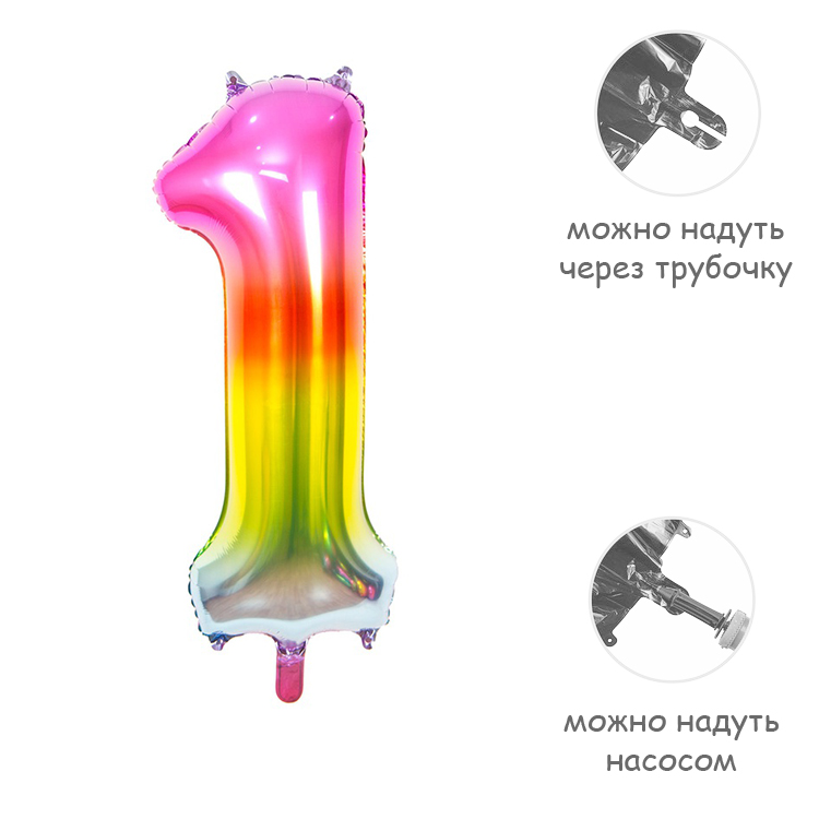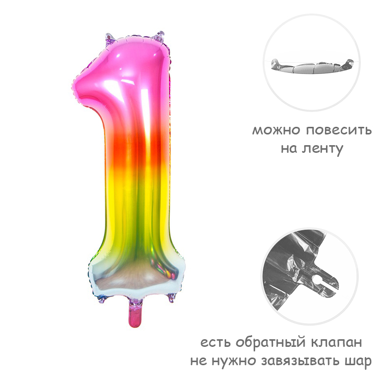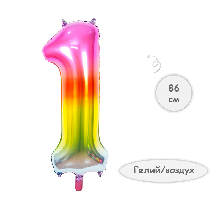 Воздушный шар цифра 1 металлик радуга 86см Китай